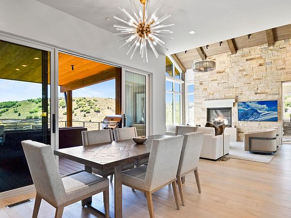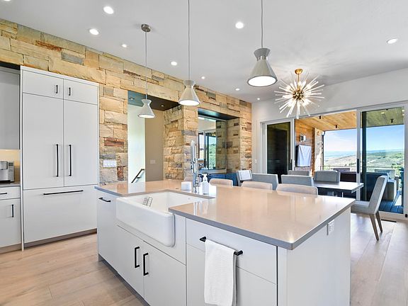 Welcome to Whispering Hawk. Located within the exclusive gated community of Tuhaye, with amenities including Park City's Main Street, Deer Valley and Park City Mountain all within a 20 minute drive, enjoy mountain, lake and valley vistas, open space, rolling hills, golf course views, and an expansive trail network for your walking, hiking and biking pleasure. The home provides a serene retreat, boasting a modern interior design with luxury touches throughout, two living spaces, and two outdoor living areas. The main level of the home features a spacious kitchen which is equipped with everything you might need to prepare homecooked meals. A breakfast bar can seat up to four, while the large dining table seats up to six. Enjoy the surrounding landscape on the large balcony, which is furnished with comfortable outdoor seating, a BBQ grill, and a flat-screen TV. In the living room, floor-to-ceiling windows flood the room with natural light. Take comfort on the large sectional couch surrounding a gas fireplace and large flatscreen TV. A beautiful, exposed wood ceiling and stone wall add a touch of mountain charm to the modern decor. The master bedroom features gorgeous floor-to-ceiling windows, exposing a lovely view of the nearby pond and surrounding landscape. There is a king-sized bed, fireplace, flat screen TV, large walk-in closet, and ensuite bathroom in this suite. The bathroom is outfitted with a large soaking tub, double vanity, and spacious shower. The second bedroom is furnished with a king-sized bed, a flat-screen TV, and the same breathtaking windows. Enjoy a spacious shower and double vanity in the ensuite bathroom. On the lower level, the second living space is furnished with a comfortable sectional couch and flatscreen TV. The lower level also features a second outdoor living space which is furnished with comfortable outdoor couches. The remaining two bedrooms are also on this level. The third bedroom is the bunk room which features two sets of queen-over-queen bunks and a flatscreen TV. The fourth bedroom is furnished with a queen-sized bed, a flat-screen TV, and an ensuite bathroom. The home is also equipped with a washer and dryer. There is parking for two vehicles in the garage with additional parking available in the driveway. Enjoy wonderful outdoor living space including a natural gas fire table. This gorgeous home combines mountain living with modern luxury, book it today to enjoy Tuhaye in style. This home is pet friendly allowing one small breed dog -- guests must provide notification including breed within 24 hours of booking, execute the Rental Agreement Pet Addendum, and pay a cleaning surcharge (total cleaning cost 3x the listed cleaning charge, covers deep cleaning + carpet cleaning). While all may enjoy the beautiful scenery and numerous trails available at Tuhaye, please note that other community amenities are available to Talisker Club members only. Non-member guests renting are not provided access to golf, pool, clubhouse and other Talisker Club amenities. However, guests will enjoy the home's wonderful amenities, and there are excellent public golf courses and sports clubs with daily and monthly memberships available in close proximity of Tuhaye available. HOA rules allow us to offer this property for 30 night or longer stays only. Rate listed reflects discount for 30+ night rental. The monthly rate varies depending on your desired dates. Please contact us for a custom quote for this home. This home is pet friendly allowing one small breed dog -- guests must provide notification including breed within 24 hours of booking, execute the Rental Agreement Pet Addendum, and pay a cleaning surcharge (total cleaning cost 3x the listed cleaning charge, covers deep cleaning + carpet cleaning). While all may enjoy the beautiful scenery and numerous trails available at Tuhaye, please note that other community amenities are available to Talisker Club members only. Non-member guests renting are not provided access to golf, pool, clubhouse and other Talisker Club amenities. However, guests will enjoy the home's wonderful amenities, and there are excellent public golf courses and sports clubs with daily and monthly memberships available in close proximity of Tuhaye available. HOA rules allow us to offer this property for 30 night or longer stays only. Rate listed reflects discount for 30+ night rental.