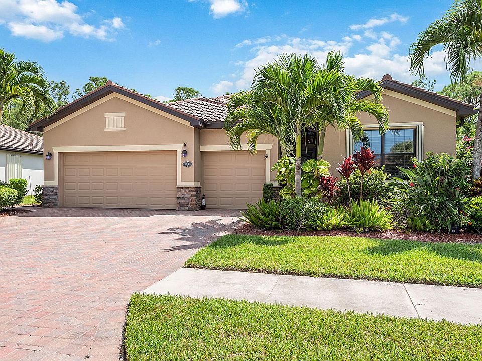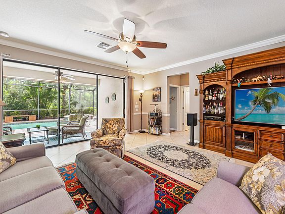 This super quality gem is feature rich, has been meticulously maintained, and is professionally decorated! As you step inside, you will be greeted by a spacious open-concept layout featuring four bedrooms and three baths spread over 2,293 square feet of living space. At the heart of the home, a large kitchen beckons. The solar light tubes bathe the kitchen in natural light. Equipped with high quality, stainless appliances like a Bosch induction range, glass tile backsplash, granite countertops, breakfast bar, pantry and an island that any home chef would enjoy. The primary suite is a retreat, complete with hardwood flooring, a walk-in closet and a spa-like en-suite bath. Each guest bedroom has been upgraded with wood-tile flooring. The screened-in lanai boasts a solar-heated pool/ spa with total automation and top-of-the-line pump and offers a serene, private setting from the wooded preserve backdrop. Enjoy your morning coffee from the lanai with the sun rippling through the trees. Additional perks include a 3-car garage, storm shutters on every window, top-notch security system and HVAC automation. Furnishings negotiable. Low HOA fees! Just minutes to downtown Naples, Marco Island.
