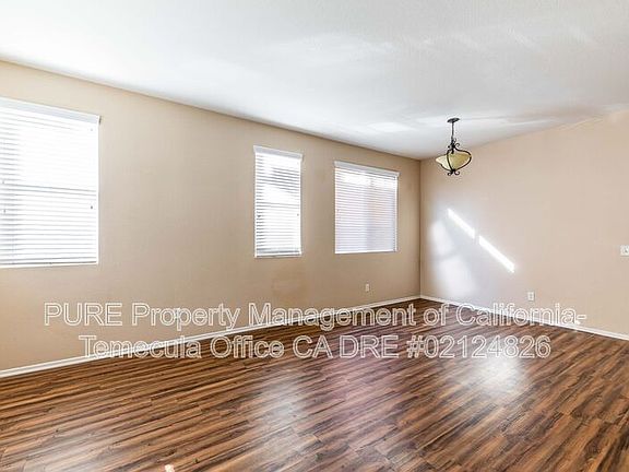 Don't miss out on this great 4 bedroom home for rent in Murrieta! Brand new flooring throughout the formal living, dining room and all bedrooms! The spacious kitchen features granite countertops, lots of upper and lower cabinet space and is open to the family room. The large family room features custom tile, a fireplace, and half bathroom. Upstairs you will find the four bedrooms, 2 full bathrooms, and laundry room. The master bathroom features dual sinks, separate stand up shower/ bath tub, and large walk-in closet. Backyard is spacious and has a concrete patio area perfect for entertaining or spending time outside! This home is conveniently located near the I-15 and I-215 freeways, great schools, shopping and entertainment! Listing and marketing information provided is deemed reliable and accurate but not guaranteed - agent, broker, and resident should confirm all property information and specifications before entering rental agreement. Visit our website to review our rental criteria prior to submitting an application. A $54 non-refundable application fee per adult will be charged. Every person over 18 who would reside at the property must complete and submit a rental application. We are a fair housing provider. All applicants will be subject to the same application criteria. For REDUCED move-in costs, talk to us about our Security Deposit Replacement Program! All residents are enrolled in the Resident Benefits Package (RBP) for $39/month which includes HVAC air filter delivery, our best-in-class resident rewards program, identity protection, and much more! More details upon application. *We do not accept applications from any 3rd party service including Zillow. Please apply on our website directly. PURE Property Management of California DRE #02124826 Amenities: Dishwasher, Microwave, Range/Oven