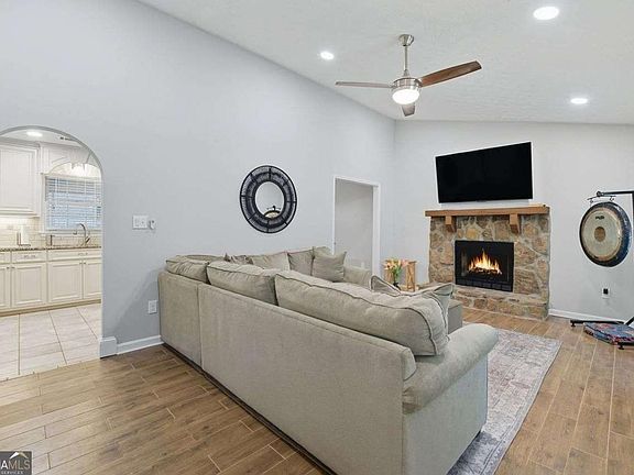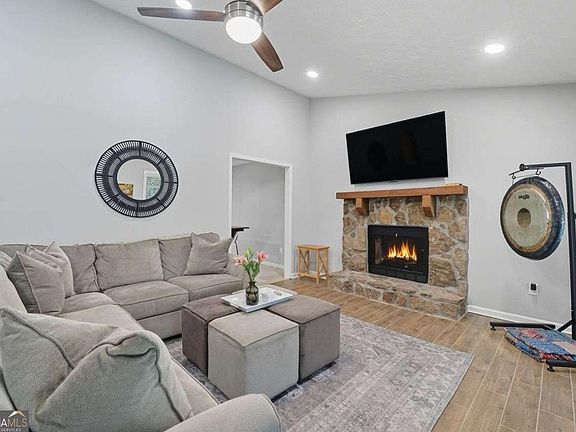 Enjoy fresh curb appeal with a brand-new roof, new cement siding, updated exterior paint, and a welcoming new front porch railing, stairs and paint in this beautifully renovated 3 Bedroom/2 Bath. This beautiful home is nestled on a quiet, wooded street in Suwanee's highly sought-after North Gwinnett School District. The private, newly fenced backyard offers a peaceful retreat, featuring a large screened-in porch-ideal for morning coffee or evening gatherings (not included in square footage). The oversized two-car garage includes laundry hookups, extra storage/workspace, a stainless steel refrigerator/freezer, and a new tankless water heater for energy efficiency. Inside, natural light fills the home, highlighting numerous upgrades. The vaulted family room features a cozy fireplace and a mounted TV that stays. The light-filled kitchen boasts granite countertops, ceiling-height cabinetry, a pantry, and a sunny breakfast nook. All stainless steel appliances-including the refrigerator, range, and dishwasher-are included. Upstairs, the owner's suite offers a relaxing escape with a soaking tub, separate shower, and modern finishes. Both bathrooms are fully renovated. All bedrooms feature new carpet, with hardwood floors in the hallway and new oak staircases and railings, from the garage and up to the second level, adding timeless charm. Additional updates include a new electrical system, stylish lighting, and ceiling fans throughout. Located just minutes from Suwanee Town Center and George Pierce Park, enjoy easy access to trails, shopping, dining, and community events.