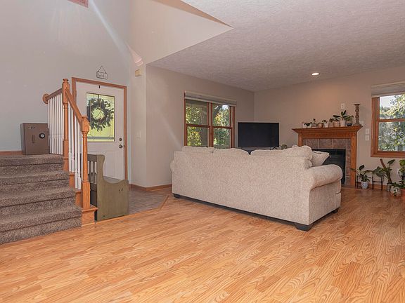 Welcome to the desirable Stratford Hills neighborhood! This beautiful 2-story walkout home sits on an extra-large cul-de-sac lot (0.40/ac) and features numerous updates throughout. The inviting 2-story foyer with tile flooring opens to a bright living room with laminate floors and a cozy gas fireplace. Enjoy meals in the spacious dining area with access to the composite deck overlooking scenic views. The kitchen features ample cabinetry and includes all appliances. Convenient main-level laundry and a half bath complete the first floor. Upstairs, you'll find comfortable bedrooms including the primary suite with a vaulted ceiling and private bath featuring a double-sink vanity and tub/shower. There is a new roof (2025). You will love the walkout level with a family room and 4th bedroom. There is a fire pit in the back which is ideal for enjoying the beauty of the treed lot. Mattawan Schools.