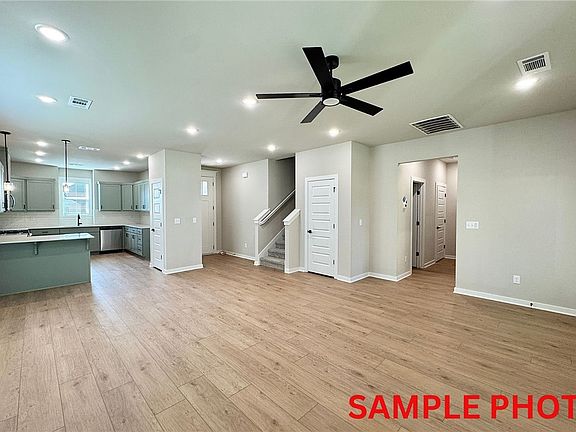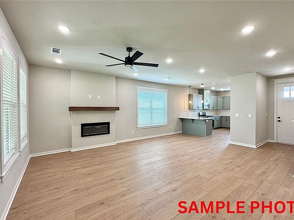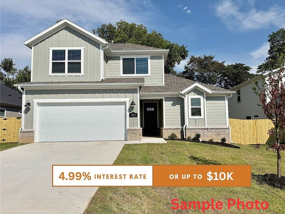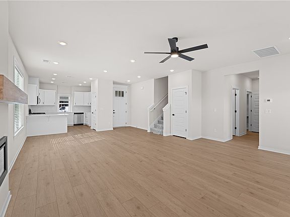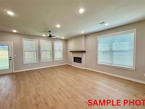 Fence, blinds and gutters included! Discover your dream home in the new neighborhood- Jacob's Crossing. Aiden plan with garage on the left and West facing! 9 ft ceilings, linear electric fireplace in the living room, LVP flooring throughout the main living areas and primary bedroom, quartz countertops and more. Chef's kitchen boasting frigidaire stainless steel appliances, gas range, pantry, quartz countertops, bar pull handles, tons of counter space and gorgeous backsplash. Luxurious primary bedroom features abundant natural light, while the spa-like primary bathroom offers a walk-in shower, double sinks, and spacious walk-in closets. Additional features include three large secondary bedrooms upstairs and a functional laundry room. Nestled on a generous lot with covered patio that overlooks the serene sodded, fully fenced backyard. Sturdy concrete siding! Model home located at 3631 Tranquility St- Lot 1.
