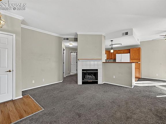 Enjoy resort-style living in the Strawberry Fields Condominium community! This convenient ground-floor unit features 2 bedrooms and 2 full baths, a detached 1-car garage, plus an assigned carport space. Off the dining area, you’ll find a cozy covered deck—just right for a small table and chairs—with extra storage steps away for added convenience. Inside, you’ll love the bright, inviting living room with neutral colors, a ceiling fan, and a gas fireplace. The kitchen includes all appliances and offers plenty of counter space and cabinets, along with a breakfast bar that opens nicely to the dining area. The primary suite includes a walk-in closet and an en-suite bath with double sinks, while the second bedroom also features a walk-in closet and easy access to the second full bath. Additional perks include in-unit laundry, A/C, and 9-ft ceilings throughout. Strawberry Fields has so much to offer—clubhouse, exercise room, pool, hot tub, and tennis/pickleball courts—all within a secured, gated community. HOA dues include water, sewer, and trash, and there’s ample guest parking. Plus, this unit is perfectly located near the clubhouse and just minutes from Ft. Carson, Peterson AFB, Cheyenne Mountain, Quail Lake, downtown, the Broadmoor Hotel, and the World Arena.