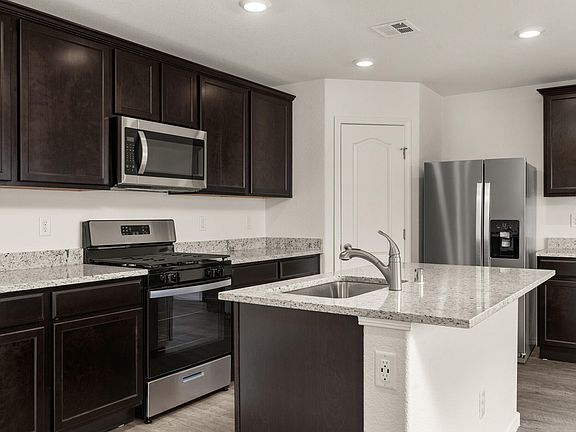 Find everything you've been looking for in the Mesquite plan at Vistas at Huning Ranch! Walking through the front door, you are greeted by the foyer that opens up to a hallway leading into the expansive family room. The chef-ready kitchen features a large island, pantry with shelving, and full suite of stainless Whirlpool(r) appliances. Upstairs, you will find the incredible master suite with a huge walk-in closet and luxurious master bathroom with a large walk-in shower. The three additional bedrooms are generously sized and give you the space you need for your growing family.