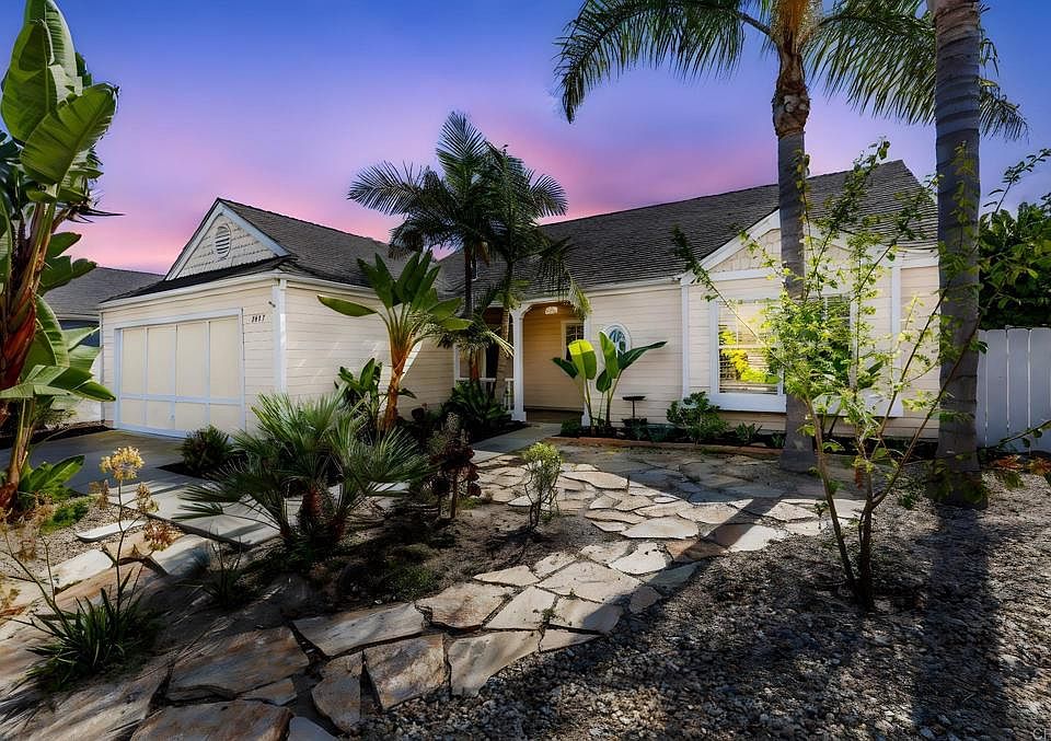 Coastal comfort meets modern ease in a great Oceanside location! At first glance, the xeriscape front yard creates the sense of curiosity to see more of this home. Once inside, the open airy floor plan invites both relaxation and connection, where the living room flows effortlessly into the kitchen area, where you'll always stay a part of the conversation. The kitchen supports ease of movement and plenty of work space where appliances are within reach. The Acacia wood floors capture the ambience as well as some carpeted areas of the home to accent the new paint that's been done recently. This home features 3 bedrooms where one can be an office space with French door entryway, and the 2nd and primary bedrooms, have ample space and comfort. You will also find one bathroom in the hallway for guests and another in the primary bedroom. Outside is a storage or exercise studio structure with A/C roomy enough to do just about anything that comes to mind. The large back yard is also a plus for family gatherings and parties, and let's not forget that you're just minutes from shopping and the beach that makes this location ideal and convenient. Another plus to this area, is there are no HOA'S.