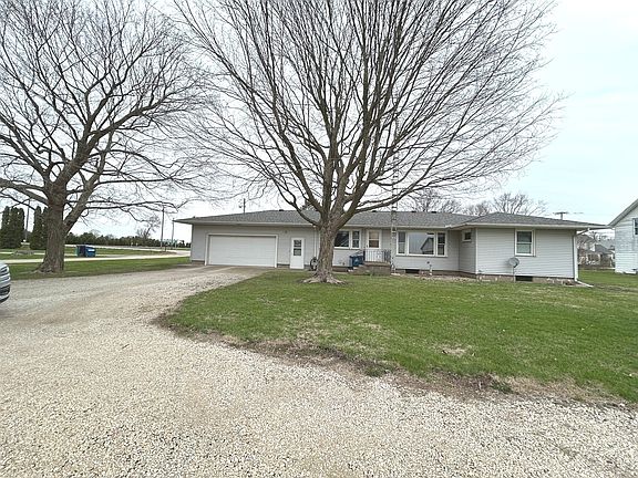 Country living on the outskirts of the village of Triumph, Il. 3 bdr, 1.5 bath ranch with large, Great room for dining & living room. Main floor laundry AND washer/dryer stay! Enjoy breakfasts, and quiet suppers overlooking the vast backyard onto farm fields/AND appliances stay! The large attached garage has built in work areas! AND you will love the other 2 car garage for those extras!