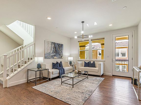 Corner lot! East facing. This stunning 3-bedroom, 3-full bathroom home is situated in a prima community in Newark, featuring a highly desirable location w/ no rear neighbors & a beautiful, amazing view of the sunrise. The home offers an open concept layout & high ceilings, with 1 bedroom/ 1 full bath on the main level. Tasteful upgrades are found throughout, including a chef-grade kitchen w/ custom white shaker cabinets, modern full mosaic tile backsplash, granite countertops, high-end SS appliances, and a supersize island. The formal dining area & private balcony are perfect for entertaining. Beautiful engineered hardwood floors adorn the main level. New paint and new light fixture in the living room. Central AC and heating provide comfort year-round. The primary suite boasts a spacious walk-in closet & double sink vanities, offering a luxurious & relaxing experience. The location is highly convenient, just a few minutes' walk to BJs Restaurant, AMC, Costco, and New Park Mall, w/ easy access to Freeway 880 & BART. It's also within walking distance to company commute bus stops and Starbucks, and close to the desirable Challenger School & park. Easy access to Facebook and all major tech companies makes this home even more appealing. Gated community & no rental restriction.