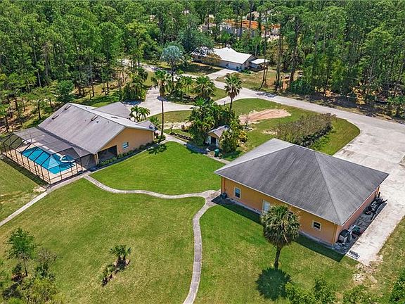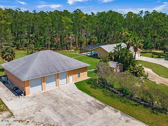 SELLER ADJUSTED PRICE BY $300,000! You don't want to miss this opportunity! Welcome to your dream canvas for a perfect Naples, Florida lifestyle where you can live, work and play! Nestled on a generous 2.5-acre square-shaped parcel (330 x 330), this property offers an unparalleled opportunity for those with a vision. The centerpiece of this expansive estate is a nearly 1800 sq ft pool/spa home awaiting your personal touch. Ready for a refresh, this blank canvas invites you to design your own sanctuary from the ground up. With ample space and potential, it's the ideal prospect for a contractor or a passionate DIY enthusiast eager to put their stamp on a property. Vaulted ceilings, bright open floor plan and spacious rooms are a delight to every designer. Step outside, and you'll find yourself captivated by the stunning 14' x 42' pool with sparkling spa, beckoning you to unwind and soak up the Florida sunshine. Perfect for relaxing after a long day or entertaining friends and family. Adjacent to the main residence stands a remarkable 3000 sq ft detached garage, offering more than just work and storage space. Complete with a one-bedroom, one-bath apartment, it also offers a full bathroom and office under air. This versatile structure opens up a world of possibilities. Whether you're looking for additional living quarters, a home office, or a workshop, this detached garage delivers. Location is key, and this property doesn't disappoint. Weber Woods offers the perfect balance of tranquility and convenience. (NO HOA) Close to the town's amenities, yet tucked away in its own private oasis, you'll enjoy easy access to shopping, dining, and entertainment options. Don't miss out on this extraordinary opportunity to create your own slice of paradise in Naples, Florida. Embrace the potential, and let your imagination run wild as you transform this property into the home of your dreams. Seize the chance to make your mark and embark on a journey of endless possibilities. Schedule your viewing today and start envisioning the life you've always desired! Regarding insurance, this property is located in FEMA Flood Zone X - not in a Special Flood Hazard Area, saving the homeowner on insurance costs, among other benefits for future improvements. (FEMA Map Date 5/16/2012)