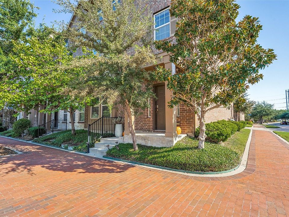 Elegant three story corner lot brick home located in coveted Addison Asbury Circle neighborhood. First floor large office - living area or second master suite with full bath. Second floor offers soaring ceilings, living area, with charming fireplace, spacious dining area, gourmet kitchen with custom cabinetry, granite countertops and stainless steel appliances. Freshly painted, Vivint smart home security system, accessible by cell phone. HOA includes membership in awesome community pool and spacious clubhouse and grounds. Luxurious third level master suite, palatial bath and enormous walk in closet. Walking distance to Addison, fine restaurants and shopping.
