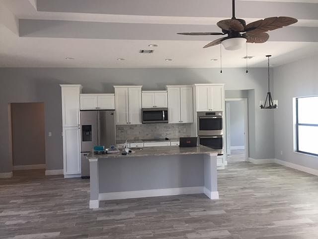 4/2/2 With Sideload Garage on Oversized Corner Lot. Completed September 2021. 5V Metal Roof with secondary water barrier, Impact Windows and Doors. 8 Foot Island in the kitchen over looking Family Room With Double Coffer Ceilings. Kitchen With Double oven, Wood Hood, Cooktop, French Door Fridge and dishwasher in Stainless....Sports Shower free standing soaking tub, tile throughout.granite in all wet areas and much More