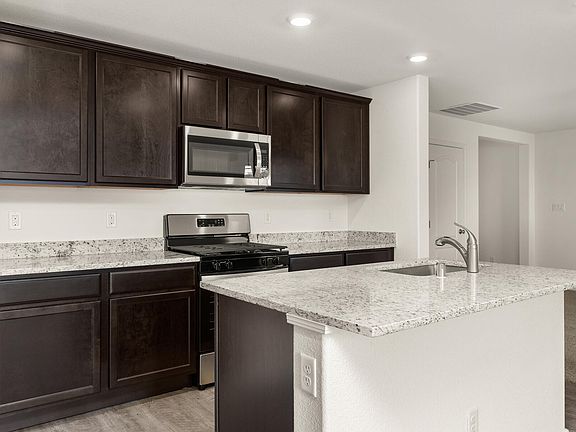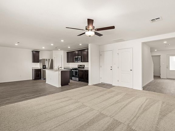 Find everything you've been looking for in the Mesquite plan at Vistas at Huning Ranch! Walking through the front door, you are greeted by the foyer that opens up to a hallway leading into the expansive family room. The chef-ready kitchen features a large island, pantry with shelving, and full suite of stainless Whirlpool(r) appliances. Upstairs, you will find the incredible master suite with a huge walk-in closet and luxurious master bathroom with a large walk-in shower. The three additional bedrooms are generously sized and give you the space you need for your growing family.