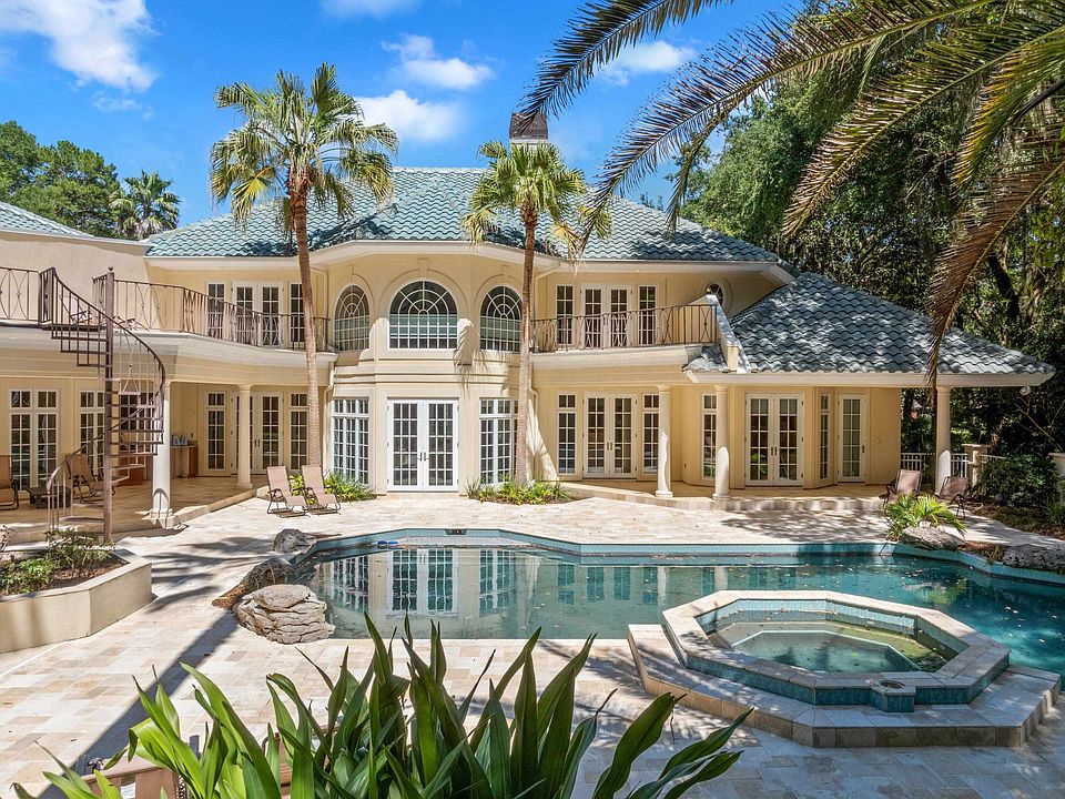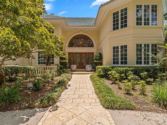 This 5-bedroom estate offers resort-style living on a private 3.5-acre double lot, complete with a pool, spa, stone patio, and veranda—perfect for outdoor entertaining. Inside, light-filled rooms feature soaring ceilings, arched entries, extensive moldings, and three fireplaces. The split-bedroom floorplan provides privacy, with two upstairs bedrooms opening to private patios. The grand foyer leads to a formal living room with stunning views of the outdoor oasis, a beautifully appointed office with fireplace and built-ins, and a formal dining room. The chef’s kitchen includes bar seating, an eat-in area, and a spacious pantry, and opens to the great room with direct access to the pool. All nestled in a peaceful, upscale neighborhood offering luxury, space, and privacy.