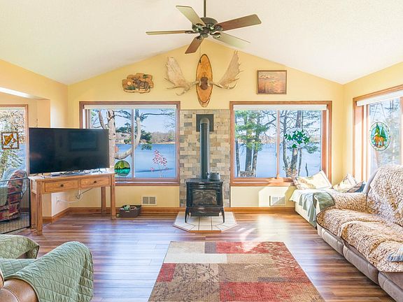 185 feet of beautiful Ripple Lake frontage, 3-bed 2-bath open plan home. Extensively updated since 2019, this home features Anderson Windows throughout, an insulated attic, new flooring and lighting, and all exterior doors replaced. The kitchen offers new appliances, backsplash, sink, and faucet. Additional upgrades include a washer/dryer, a free-standing gas fireplace with a stone tile feature, and both bathrooms have been fully renovated, highlighted by a deep freestanding tub in the primary suite. Other notable improvements are a blacktop driveway and a gas heater in the garage, delivering move-in-ready luxury and functionality throughout.