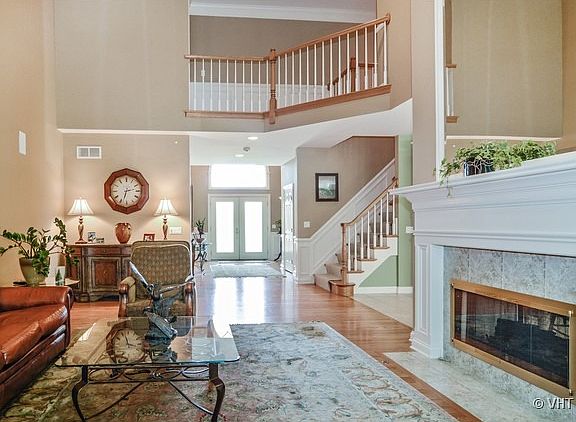 Fabulous custom Southampton home nestled on 1.4 wooded acres in prestigious Heritage Oaks subdivision. Home offers 1st floor master suite w/luxury bath, whirlpool, shower, & double sinks, WIC, & sitting rm. Chef's kitchen has cherry cabinetry, SS appls, vltd eating area w/skylights, dual-sided FP that services kitchen & family room---great for romantic dining or cozy warmth in FR. Huge two-story family room has the dual-sided fireplace & wall of windows affording seasonal panoramic views of woods, wildlife, & perennials. First floor den/office & laundry room are a plus! The massive 2nd floor has 4 more bedrooms, hall bath + J & J bath, bonus room over the garage that has all the duct work in place to finish & is plumbed for a bath. Additional workroom/playroom is off the 5th bedroom. Finished English basement (w/new carpeting) offers bar, exercise, & sauna. Stairs from basement to 4-car garage! Dryvit tested 4 years ago. Terrific private location w/wonderful patio and wooded vistas!