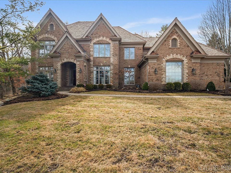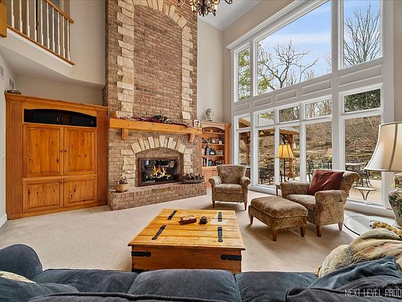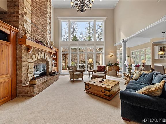 Nestled atop a picturesque 4-acre hill, this stunning estate offers a rare blend of understated elegance and natural beauty. Located in the highly sought-after Burr Hill Golf Club subdivision, this exquisite all brick home is surrounded by breathtaking views, abundant wildlife, and serene landscaping that includes five ponds, a cascading waterfall, and meticulously designed rock scape gardens. Boasting 4 bedrooms, 3.5 baths, and an in-law suite in the lower level, this home is designed for both luxury and comfort. Step into the grand two-story foyer and family room, where a floor-to-ceiling brick fireplace with custom built-ins serves as a striking centerpiece under a soaring 19-foot ceiling. Transom windows and stunning sightlines allow natural light to fill every space, while deluxe trim details add a refined touch throughout. The sunroom provides a peaceful retreat, and the office offers inspiring views of the beautiful rock scape. The living room features a cozy recessed window seat-perfect for enjoying a book while gazing out over the sloping yard teeming with nature. A maintenance-free deck overlooks the tranquil property, ideal for relaxing or entertaining. The gourmet kitchen flows seamlessly into the family spaces, while dual staircases lead to the second level, where you'll find a spacious master suite with a 13-foot ceiling, two oversized walk-in closets, and a luxurious ensuite bathroom. Jack-and-Jill bedrooms and an additional ensuite bedroom provide ample accommodations. The lower level is a true entertainer's dream, complete with a game room, family room with a second brick fireplace, and two separate staircases for convenient access. A massive mudroom, second-floor laundry, and an oversized 4-car garage add to the home's functionality. A paver walkway enhances the inviting curb appeal. With stunning views from every window, refined craftsmanship, and a peaceful yet convenient location, this one-of-a-kind property is a rare find. Experience the perfect blend of luxury, nature, and practicality-schedule your private showing today!
