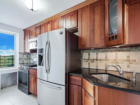 INCREDIBLE OPPORTUNITY to own a Two Bedroom Sunny Hill Co-op with Manhattan Skyline views! Sun drenched move-in ready two bedroom features large living room with a black quartz breakfast bar area for easy entertaining between the kitchen and living room. The well appointed galley kitchen offers amenities such as: gas stove, microwave and French Door refrigerator. Refinished hardwood floors throughout add warmth and modern character.