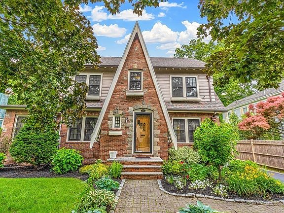 Prepare to fall in love with this pristine home in top Winchester flats area! This enchanting and tastefully updated English Tudor style home is situated on a surprisingly oversized/ deep private lot with fish pond, waterfall, gorgeous gardens & lush trees surrounding its entirety; creating the feel of a peaceful oasis! This inviting home offers a traditional layout with front to back living room w/fplc & French doors leading to spacious deck, dining room w/built in, a lovely updated kitchen w/ direct exterior access plus glorious sunroom/family room. The second floor offers 3 spacious bedrooms including a large master w/ private bath plus an office! Third floor has an additional bedroom & offers potential to finish add’l space. High ceilings, original woodwork, newer high end Marvin wood/ clad windows, newer roof, heating 2 yrs, renovated kitchen & baths, 2 car garage, must see this move in ready gem! Close to town, train to Boston, winter pond, horn pond, and so much more!