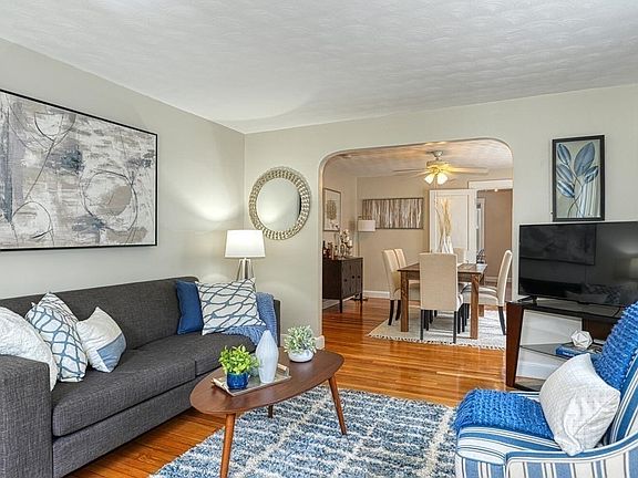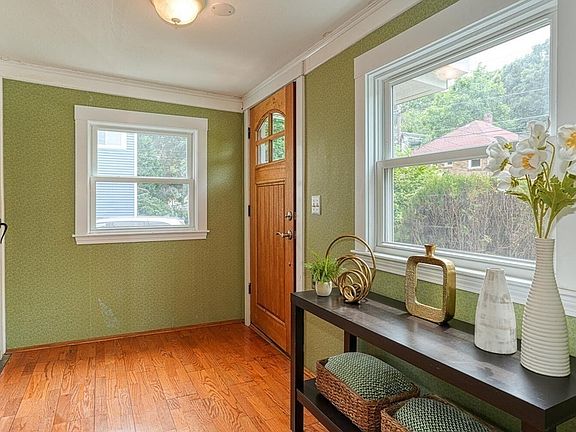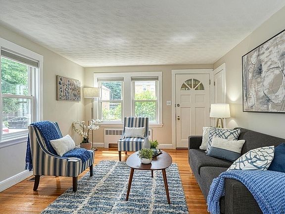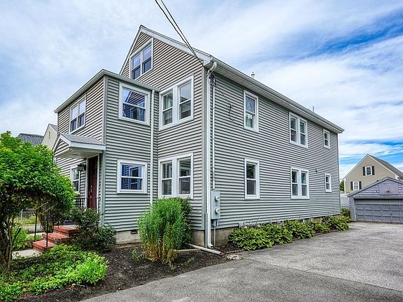 Nicely updated 2 family in Waverley Square with gas heat, cooking and central air. First floor offers 2 bedrooms, 1 bathroom, living and dining room, and large tiled kitchen. Freshly painted walls, refinished floors and new quartz countertops make this unit move-in ready. Upstairs unit encompasses 2 levels with double staircases, a fully remodeled kitchen with open floor plan to living and dining room, 2 bedrooms, full bathroom plus laundry room on the second floor with expansive deck overlooking the sprawling yard. The third floor primary bedroom suite has sliders to balcony, lots of closet space, bathroom with beautifully tiled walk in shower, large office with skylights, laundry, and great views. Two gas furnaces, hot water tanks and 100 amp panels with circuit breakers are found in the basement, along with the first floor unit's laundry. Just a few blocks from Waverley train, 73 Bus, grocery, restaurants, and shops.