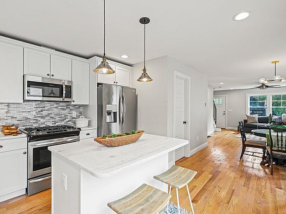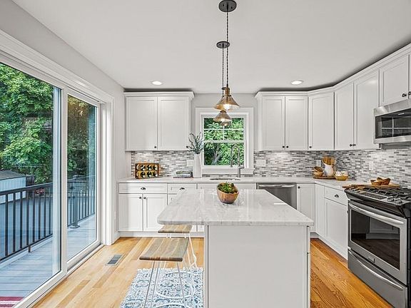 • Kit Dscrp: Countertops - Stone/Granite/Solid, Recessed Lighting, Kitchen Island, Open Floor Plan, Flooring - Wood, Deck - Exterior, Gas Stove, Lighting - Pendant