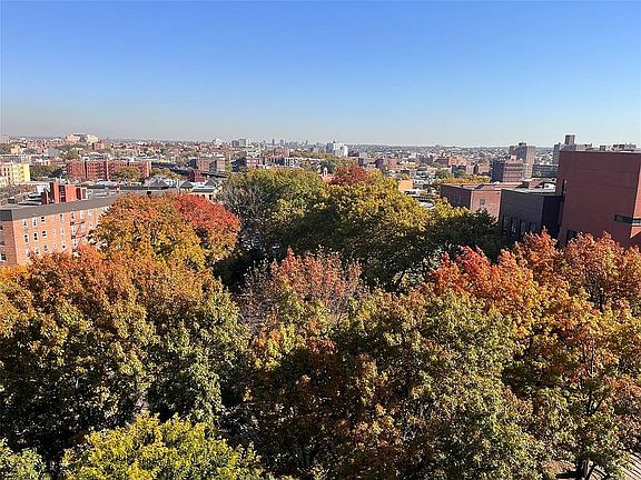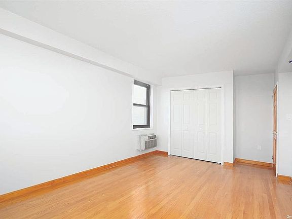 This apartment sits on an elevated hill, offering 20th-floor views and abundant natural light from a ninth-floor home. Positioned at the end of the hall, it enjoys two exposures—south and east—providing sweeping vistas across Queens. Step inside to find hardwood floors throughout and an airy, sunlit layout. A double-wide coat closet welcomes you by the entrance, while a galley kitchen with stone countertops and stainless steel appliances sits straight ahead. To the left, an oversized living room with southern light easily accommodates both living and dining areas. Beyond the living space are two generously sized bedrooms, each with ample closet space, eastern exposures, and open views. The well-designed bathroom includes a linen closet and a practical division between the sink/vanity area and the shower/toilet. Thanks to the building’s solid construction, the apartment remains quiet and peaceful, free from both neighbor and street noise. The building is well-maintained and community-oriented, with many long-term residents. Amenities include indoor and outdoor parking (waitlist), a modern laundry room with plentiful machines, a spacious bike room, and a part-time evening doorman. Directly across the street is a wraparound park, with the subway just steps away and a library at the end of the block. Come see this bright, practical, and well-priced apartment before it’s gone.