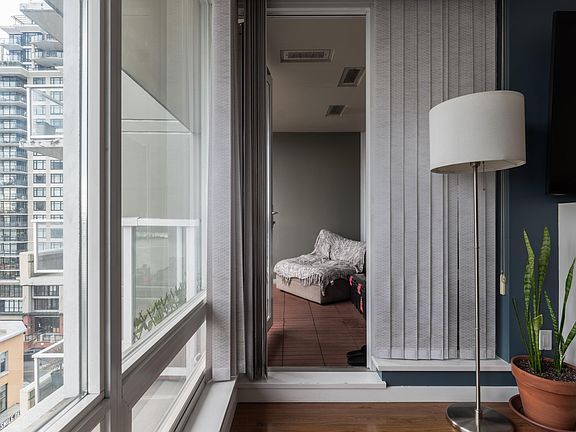 Floor-to-ceiling windowsSpacious open layoutGranite countersStainless steel appliancesVersatile den
