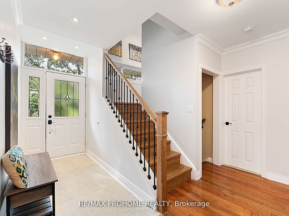 Prestigious Banbury! Cozy yet elegant 1.5-storey family home on beautiful huge pie-shaped corner lot, surrounded by multi-million-dollar new builds. Fully renovated, turn-key interior with hardwood floors, crown moulding, smooth ceilings & California shutters. Gourmet kitchen w/ quartz counters, backsplash, custom cabinetry & S/S appliances. Open-concept living/dining w/ walkout to large deck & private fenced yard. Main floor bedroom & 3-pc bath. 3 skylight bedrooms upstairs w/ abundant natural light. Finished basement perfect for rec room, office or gym. Detached garage + garden shed. Steps to scenic parks, trails, and top-rated schools, this home offers the perfect balance of tranquility and convenience, just minutes to the Shops at Don Mills, restaurants, and everyday amenities.