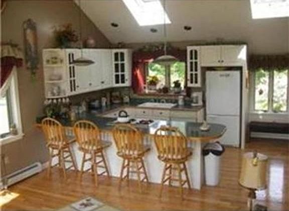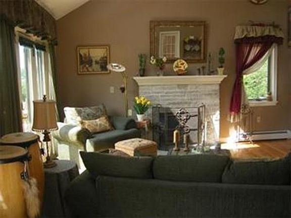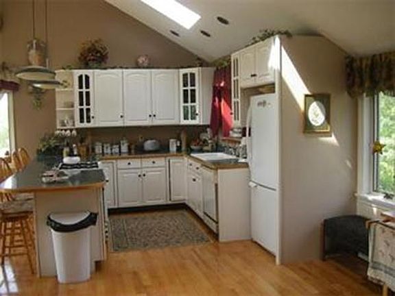 Light, bright open concept contemporary on the 13th hole of Black Swan Golf Club with great entertaining space- upper deck off living-dining room, stone patio off family room on lower level; pergola draped with wisteria over brick side patio; Gardens galore, and gorgeous sunsets- big sky views; Bedroom up, bedroom down, 2nd kitchen on lower level; 2 baths, jacuzzi jet tub on main living level; fireplaced living room, cathedral ceilings, skylights, hardwood on main level; Near Baldpate Pond/Golf * tenant moving, pictures are from prior occupant; home is being painted green now