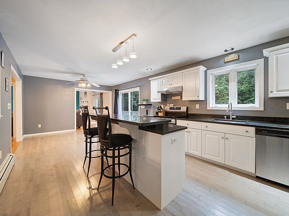 Welcome to 39 Beede Hill Road! This beautiful expanded Colonial, set back from the road, offers 2,500+ square feet of living space. The spacious kitchen, complete with granite countertops and newer appliances (2021), has an open layout that flows into the large dining room, which features its own fireplace. The great room boasts magnificent cathedral ceilings, a cozy fireplace, and a custom bar. Upstairs, you'll find three bedrooms and 2 full baths, including a generous primary suite with a private loft overlooking the living room, perfect for a home office or hobby space. The large freshly painted back deck is accessible from sliding glass doors off both the living room and the kitchen, with views overlooking the private backyard. The home includes a partially finished basement with ample storage space and room for a gym, a two-stall garage with a walk-out door to the driveway, a backup generator, an electronic pet door, a sprinkler system, and wired surround sound. New roof in 2020! Close to Fremont businesses, elementary school, and route 101 for easy commuting!