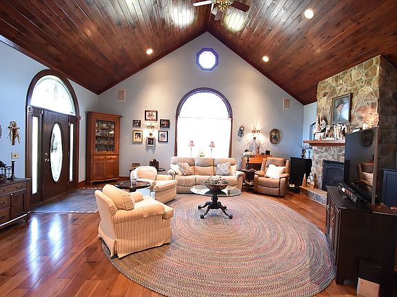 NO EXPENSE WAS SPARED ON THIS CUSTOM-BUILT HOME! IT HAS IT ALL!! AN IN-GROUND SWIMMING POOL, FINISHED BASEMENT, A HUGE 2 CAR GARAGE, SITUATED ON 2 LARGE LOTS! GORGEOUS MOUNTAIN VIEWS! As you enter through the front door, you will be impressed with the vaulted open-concept floor plan. The first floor boasts wide plank hardwood floors and custom tile finishes throughout! The vaulted great room has tons of natural light, a stone gas fireplace, and an impressive wood-paneled ceiling. On the main floor, you will also find a large bedroom with an attached bathroom that could easily serve as a master bedroom if needed. You will also find a large, main-floor powder room with beautiful tile designs. The open concept is perfect for entertaining large groups and opens up to a spacious dining and kitchen area. The oversized chef’s gourmet kitchen has granite countertops, custom cherry cabinets with tons of storage room, stainless steel appliances, double ovens, and a large island. The eat-in kitchen also has access to the screened porch and stairs that lead you to the backyard oasis. The resort-style amenities include a large in-ground pool, an outdoor basketball court, covered patio, sundeck, a flat back yard, and a storage shed. It will be hard to leave the fully-fenced backyard oasis, but you might want to go relax in the finished basement, which makes for a wonderful entertainment space. It is perfect for hosting large groups that include a media room, an extra-large game room, and a full bathroom perfect for guests that are enjoying the pool. The second floor hosts the luxurious master bedroom suite. This enormous bedroom is complete with a private bathroom that has a large soaking tub, double vanity with solid surface countertops, a large walk-in closet, and access to the laundry room. As you travel down the open hallway, you will come to a small room that could be used as an office or bedroom. And at the far end of the hallway, you will find another bedroom suite with a full bath and large closet. Other notable features of this home include: durable wooden doors throughout, a whole-house entertainment system, 2 efficient HVAC units, a heated pool (gas), electronic retractable pool cover, trex decking, high-end finishes, and custom tile work in bathrooms and main entrances. Showings will be allowed to pre-approved Buyers only. The Seller is willing to work with Buyer’s agents. Call the owner for showings. Don't miss the opportunity to own this magnificent home!!!