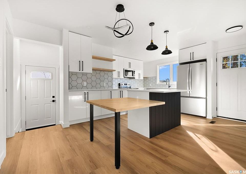 Professionally re-developed by Bouss Construction, this Walsh Acres home has been completely transformed with quality craftsmanship and thoughtful design from top to bottom! Located in a prime 10/10 location, this property sits with neighbours on only one side and is just a short walk to both elementary and high schools. Step inside and you’ll immediately notice the bright, open layout with sleek vinyl plank flooring and a neutral colour palette that feels fresh and inviting. The kitchen has been carefully reimagined for both function and style, featuring quartz countertops, white cabinetry with black hardware accents, Hevea wood shelving, a centre island with an integrated dining table and brand-new stainless-steel appliances. The living room impresses with large windows and a custom feature wall complete with a built-in electric fireplace, TV insert and side shelving for a modern, polished look. Down the hall, you’ll find three bedrooms, perfect for families or a home office, along with a fully renovated 4-piece bathroom showcasing custom tilework and updated fixtures. The basement adds more living space with a spacious rec room, additional bedroom, 3-piece bathroom and a laundry/utility room with extra storage space. Outside, you’ll appreciate the oversized single detached garage with a new overhead door and a yard full of potential for future outdoor living. With updated windows throughout, H/E furnace, newer shingles and a brand-new washer and dryer this home is 100% move-in ready. As the saying goes, location, location, location — and this one truly checks every box.