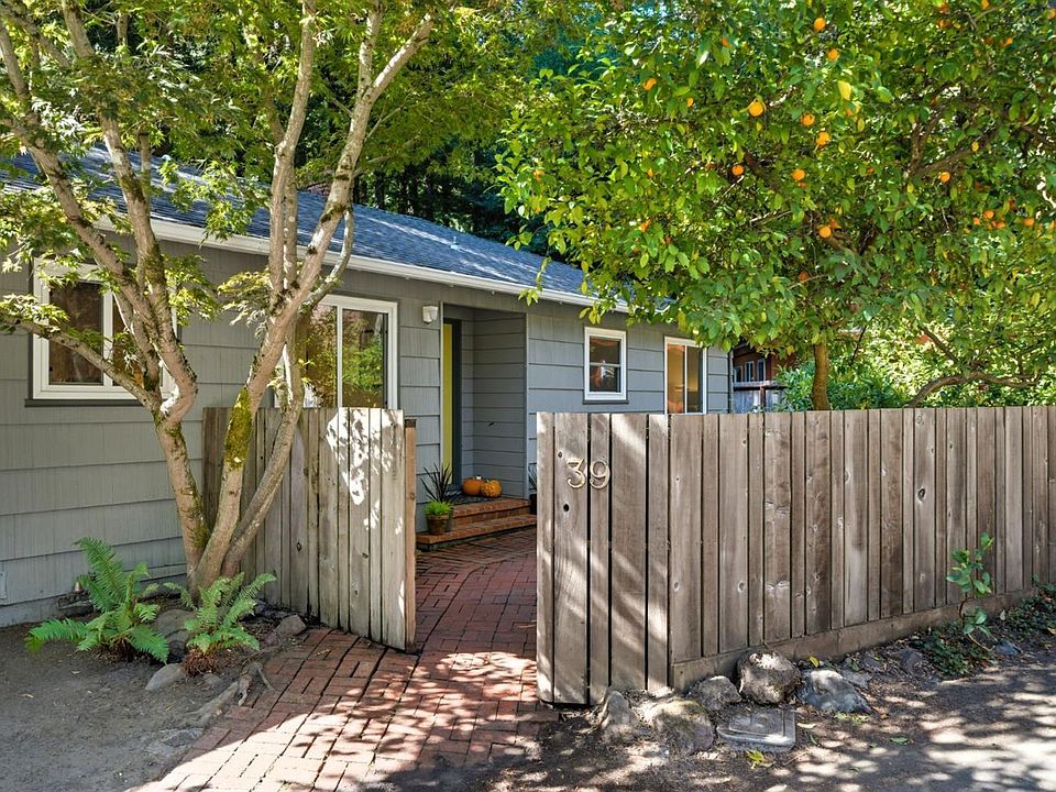 If you've ever wondered how it would feel to live in a gorgeous state park, come see 39 Bridge Road in Larkspur, California. This incredibly peaceful single level home is near the entrance to Baltimore Canyon. A charming front patio and gorgeous citrus trees welcome you home to a gracious living/dining room with wood burning fireplace, built-in bookshelves, a large bay window with cozy window seat, and French doors opening to a deck perched over the beautiful seasonal creek. There's a super attractive and updated eat-in kitchen, two lovely bedrooms, one and a half baths, and a custom crafted sunroom/office tucked away off the primary bedroom, with its own entrance. There's a one-car garage and potential space for expansion (check with city.) Larkspur offers residents excellent public schools, world class hiking, great shops and restaurants and a close knit community that gets together for cultural events and celebration. Best of all, you'll awaken every day inspired by the quiet majesty of redwoods all around you. Living among them is a healthy and beautiful thing. And, Perry's is right down the road. :)