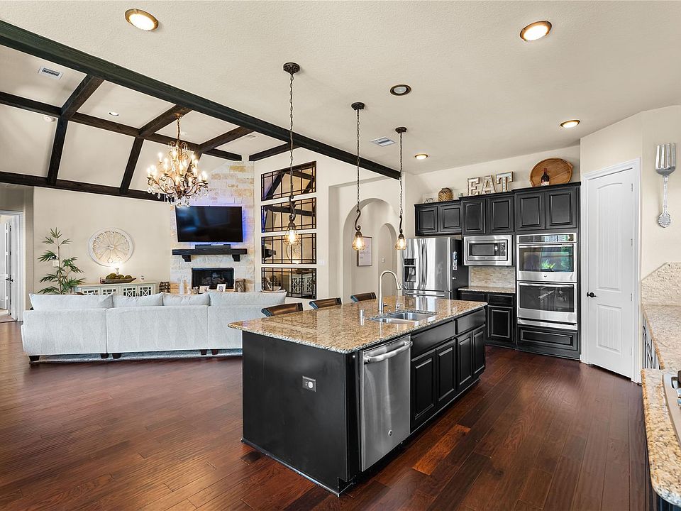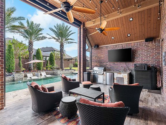 Experience resort-style living every day at 39 Camden Oaks Ln, a showstopping luxury retreat in the prestigious, guard-gated community of Bentwater. This 4BD, 3.5BT masterpiece with a private study sits on an expansive 13,085sf lot & blends timeless elegance, comfort & sophistication, complete with whole home smart system. Inside, you’ll find soaring ceilings with wood-beam accents, an open-concept design perfect for entertaining & a chef’s kitchen with double ovens, large island & high-end finishes that flow seamlessly into the stunning living area. The primary suite offers a spa-inspired bath with dual sinks, vanity, jetted tub & walk-in shower. Upstairs, enjoy a game room with wet bar & dedicated media area for ultimate entertainment. Outside is your personal paradise with resort-style pool & spa, full outdoor kitchen, motorized screened patio & fire features that set the scene for unforgettable nights. 3-car garage, wide driveway, MISD schools & low tax rate! Luxury living awaits!