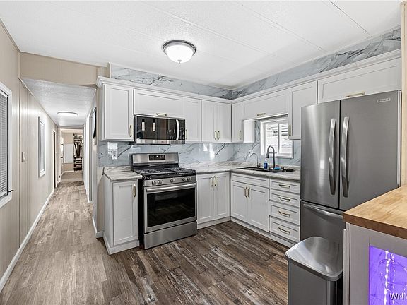 The cozy living area flows nicely into the kitchen and dining space, giving this single wide a spacious and welcoming feel. A big bonus is the 44’ x 12’ attached enclosed shop area/garage...perfect for hobbies, extra storage, entertaining, or even as a one car garage. You’ll have ample parking as well under the carport and beyond on the concrete driveway.