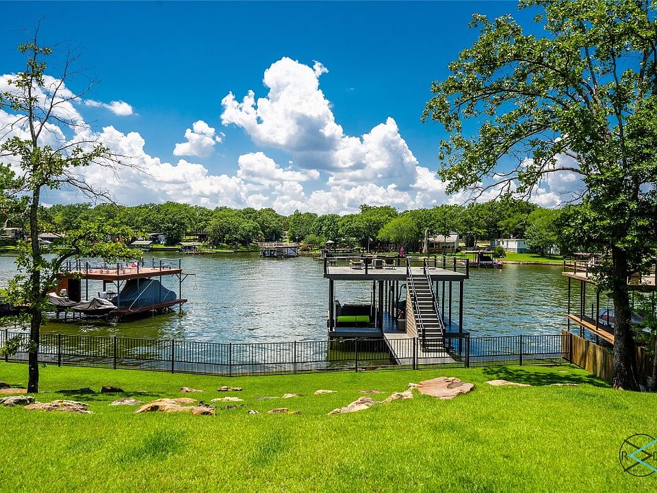 Looking for great water depth for your ski boat, we have it here! Waterfront home offers so much, just under 100' of frontage, .56 acre lot, dock with party deck., covered back porch runs the full length with fans with a full bath accessible from outside, no wet kids running inside. Enjoy evenings around the firepit roasting smores and telling stories about your day. When time to go in, we have rustic wood look tile flooring, no worries with your flooring being damaged. Primary bedroom downstairs & kids upstairs, with roughly 600 sq ft bonus room for 4th bedroom, currently set up to sleep 8, plumbing prepped for future bathroom. Oversized garage for storing the lake toys or golf cart, includes an attached carport to accommodate a boat trailer or additional vehicles. The kitchen is open to dining and living, great for entertaining with the full size built in freezer-refrigerator. Nice wood burning fireplace, hear the crackling of the fire on those cold winter days. Summer '23 ready