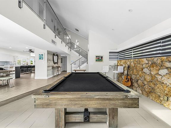 Boat dockWaterfront houseHeated poolEn-suite bedroomDesignated office spaceSummer kitchenPool table