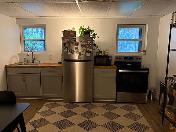 All utilities are included except internet/ cable (electricity, water, sewer, trash). This large 1 bedroom 1 bath home has a mountain getaway feel but is only a 10 minute drive to downtown. This is the entire lower level in a duplex, the upper level is also for rent, or the entire home can be rented (see separate Zillow listings). Enjoy the peaceful oasis vibe with a mountain stream running through the yard. Recent renovations include an 8 foot privacy fence in the front, new windows, and an efficient HVAC system. There is a large room at the entrance, a living room adjacent to the kitchen, and a very large bedroom. The Blue Ridge Parkway is nearby and there are endless garden opportunities if desired. Six or 12 month lease is available. Small dogs and cats will be considered with a refundable $200 pet deposit. No smoking on property.