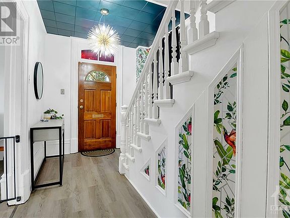 Imagine living in a character home on a large downtown lot, within walking distance of shops and restaurants in the heart of Smiths Falls. This red brick beautyA is in a fantastic location, only 2 blocks from the downtown core. The blend of original tall baseboards & transom windows with modern lighting & updated finishings will make you feel right at home. New flooring spans from the front foyer through the living room, play room/flex space & formal dining. Spacious kitchen offers s/s appliances adjacent to the fully renovated 3pc bath. Three bedrooms, an additional 3 pc bath and additional storage for seasonal items can be found upstairs. The 3 season sunroom is your gateway to a large deck, welcoming you to a south-facing fenced yard with plenty of room to play and grow your own veggies. Two outbuildings & attached garage makes it a breeze to park, store equipment or have a workshop. Updates since 2023: siding on back of home & garage, PVC fence, HWT, furnace, A/C. 24hrs irrevocable. (id:41440)