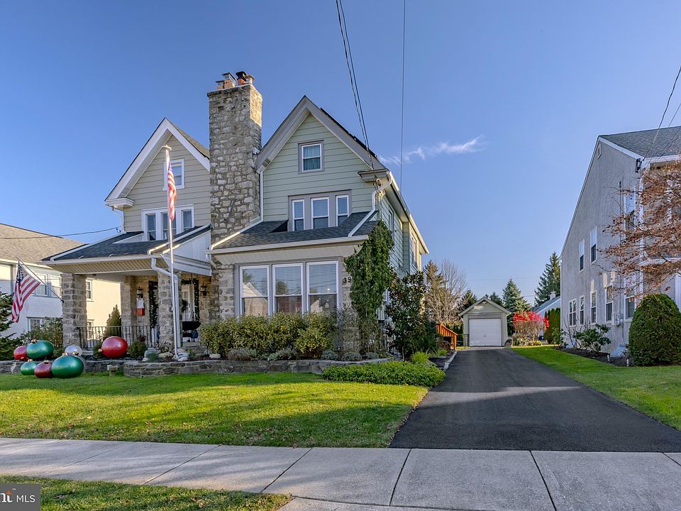 When it comes to value, an incredibly accessible location, charm and versatility, 39 Columbus has it all! This beautifully revived and updated 4 bedroom 2 full bath home has been cherished by its current owners, offering a wonderful floorplan, giving you 4 levels of space. Pull up and immediately fall in love! The beautiful stone and vinyl facade, the fresh roof, the beautiful front door with side lights, long private drive that leads to a detached garage and the overall curb appeal draws you in. Enter at the finished porch with its slate tile floor and large windows, a great space for an office, large mudroom entry or just a nice sitting room. The living room and dining room flow right into each other for a great space for hosting. The original oak hardwood floors gleam with their walnut inlay. The living room offers plenty of space for larger furniture. Enjoy the ventless gas fireplace and dressing up the classic mantle for the holidays. The dining room, also large in size, can accommodate a large table and server and pulls so much natural light with its triple windows! The kitchen has ample cherry cabinets, tiled flooring and backsplash, stainless steel appliances to include a gas range and recessed lighting. Take advantage of the large pantry closet which you don’t often see in these older Havertown homes! The 2nd floor of the home has 3 lovely sized bedrooms and the most gorgeous hallway bath. Take pride in the custom design of the bathroom with double marble top vanity, ship lap wall, beautiful lighting and modern tilework. The 3rd floor is exceptional! Talk about a zen space! Walk up and imagine the possibilities of the space. There are 2 rooms, an open loft space as well as a bedroom. The lower level of the home is super functional with a nice open room with recessed lighting and vinyl flooring that can be a studio, work out space, another hangout space, etc. The 2nd full bath is convenient and so is the laundry area. The property is perfect in size, offering a fully fenced backyard, tons of private driveway parking and room for a nice veggie garden. The species of plantings at this home is so varied and beautiful in the green months each year. If you are looking for a home that is completely move-in ready, in an exceptional Havertown location with tons of versatile space (that feels like a single!), this is your opportunity. Walk to schools, parks, public transportation, the Manoa Shopping Center, Starbucks and much more in minutes. A true Havertown gem! Showings Start on Friday.