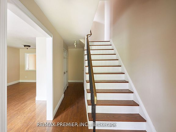 This beautiful Family home is 3 Bedroom, 2 Bathroom (Main and top Floor) On A Peaceful Street In North East Barrie. Nestled On A Large, Deep Lot With Mature Trees And A Fully Fenced Backyard with tenant access. No carpet in home. Hardwood in most areas! Freshly Painted home with eat in kitchen and new laminate floors - includes: fridge, stainless steel stove and stainless steel dishwasher with exit to yard. Living room with wall unit- built in shelves and fireplace with walkout to deck - overlooking mature trees. Large dining room for entertaining! Tenants responsible for 70% utilities.