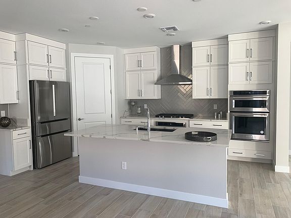 Desert landscapingOverhead storagePavers in the backyardWalk-in laundry roomCovered patioOpen floor planThree bedrooms