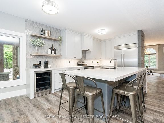 Top 5 Reasons You Will Love This Home: 1) Step into an entertainer's dream backyard, featuring a sprawling interlock patio and a post-and-beam outdoor living space, all set on a half-acre lot backing onto serene greenspace 2) The heart of the home is the upgraded chef's kitchen, boasting a massive quartz island, abundant prep and cupboard space, and an open-concept flow into the main living area 3) The fully finished basement offers incredible versatility with two additional bedroom, a flexible den with the potential to use as an extra bedroom, a full bathroom, and a cozy fireplace for movie nights or gatherings 4) Retreat to the owner's suite, complete with custom built-in closets, a spa-inspired 5-piece ensuite, and tranquil forest views to wake up to each morning 5) Ideally located in Sugarbush near ski hills, trails, and the renowned Vetta Spa, this move-in ready home also features a brand-new furnace, central air, and a carpet-free design. 1,872 above grade sq.ft. plus a finished basement.