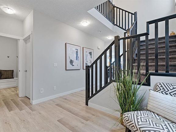 Discover the charm of valley living in Cranston’s highly sought after Riverstone community. With direct access to Fish Creek Park, the Bow River, endless walking paths, and tranquil surroundings, this elevated lifestyle is truly unique to Calgary. Backing onto a green space and pathway with quick access to a park and playground, this fully developed family home is designed for comfort and connection. Step into the welcoming front foyer with high ceilings and abundant natural light. The main level features durable vinyl plank flooring in neutral tones, creating a modern and inviting feel throughout. The kitchen is a showstopper, with a designer tile backsplash, statement hood fan, gas cooktop, built in oven and microwave, two toned quartz countertops, and upgraded cabinetry. A spacious walkthrough pantry with room for a second fridge or freezer connects to the mudroom, offering practical access to the garage and a conveniently located powder room. Upstairs, the primary suite is a private retreat complete with a lovely ensuite featuring a soaker tub, dual sinks, a walk in tiled shower, and a generous walk in closet. Two additional bedrooms, a full bathroom, upper laundry, and a bonus room round out the second floor. The fully finished basement extends the living space with a large rec room, fourth bedroom, full bathroom, and plenty of storage. Central A/C ensures year round comfort. Enjoy the outdoors in your large backyard with a spacious deck, large storage shed and backing directly onto a pathway that leads to the nearby playground. The community is designed to take advantage of the natural topography: ridges, escarpments, river valley- offering views and green space throughout. Check out the virtual tour!