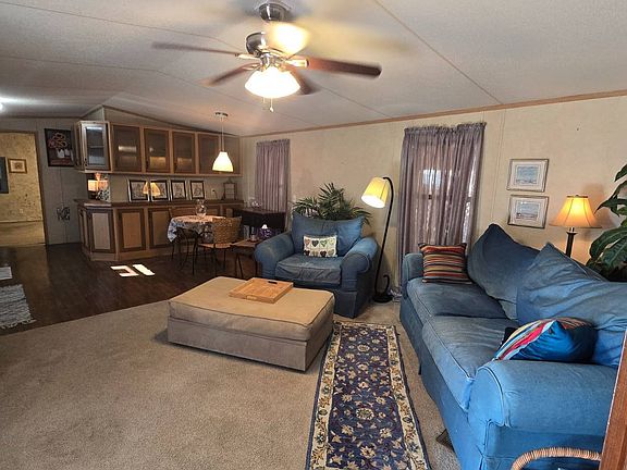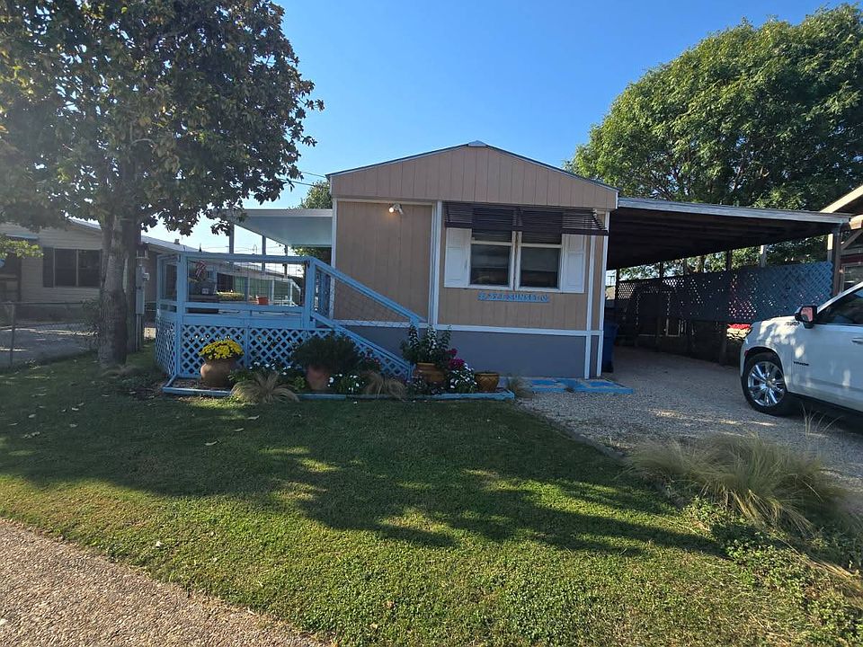 Welcome to this beautifully maintained 2-bedroom, 2-bathroom home located in Riverbend Estates 55+ community. With an open-concept floor plan, this home offers a spacious and airy feel that's perfect for both everyday living and entertaining. The split bedroom design gives everyone the space they need. Enjoy quiet mornings or relaxing evenings on the inviting front patio enjoy the beautiful lawn and fenced yard perfect for pets. Take advantage of the extended carport and ample storage. This move-in ready home is priced right in great condition and conveniently located near shopping, dining, and essential services, offering everything you need just minutes away-without the hassle of traffic. Don't miss your chance to enjoy comfort, convenience, and community all in one place. Schedule your private showing today! Riverbend is a land lease development located right in the heart of Kerrville formerly known as Three Hills this development is making great new improvements give us a call to tell you more. Your monthly lot fee of $550 includes, water, sewer, trash, use of the clubhouse and community pool give us a call to schedule today!