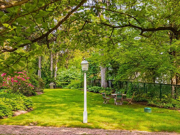 Wood-burning fireplaceCovered garageClassic white picket fenceElegant architectural detailsRefined interiorsStorage spaceEn-suite guest bedroom