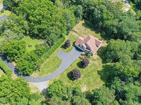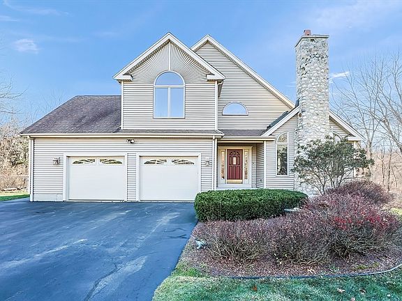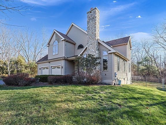 PRIVATE CUSTOM HOME TUCKED AWAY ON 6.99 ACRES yet close to restaurants, shops, and major routes! This lovely home showcases many beautiful amenities - The family room features hardwood flooring, cathedral ceilings, sky lights and a stunning floor to ceiling stone fireplace. The dining area is light and bright and open to the kitchen with custom maple cabinets, center island, stainless appliances, and direct access to the oversized deck. The first floor also features a full bathroom , pantry and ample closet storage. The second floor features an oversized primary bedroom with a beautiful palladium window, vaulted ceiling and walk in closet. Two more spacious bedrooms, a reading alcove/office and full bathroom finish off the second floor. The Lower level is a perfect space for future expansion - It features high ceilings, a second fireplace and direct rear access to fenced back yard. This lovely home is private and has a 4 bedroom septic system. PRIVATE SHOWINGS ONLY.
