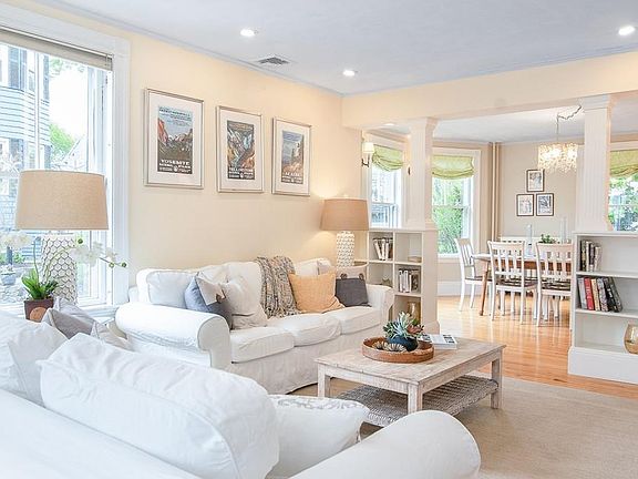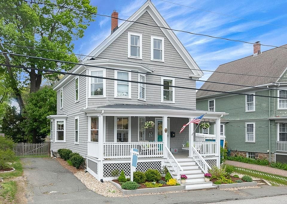 This quintessential Marblehead home is just steps to town, beaches, and restaurants. The front porch calls you inside where traditional charm is complemented by modern updates. The first floor offers an eat-in kitchen with newer stainless steel appliances, large bright dining room, living room with built-ins and hardwood floors throughout. The second floor offers 3 nicely sized bedrooms, a home office, and full bathroom. Venture upstairs to the 3rd floor to find the private master with en suite, sitting room, skylights and extra storage. The basement is the perfect spot, all ready for overflow play space or an extra family room. There are two...yes two driveways, a well manicured fenced in yard with mature plantings, deck, and patio. This home is move in ready Marblehead perfection and ready to enjoy in time for the summer....welcome home!