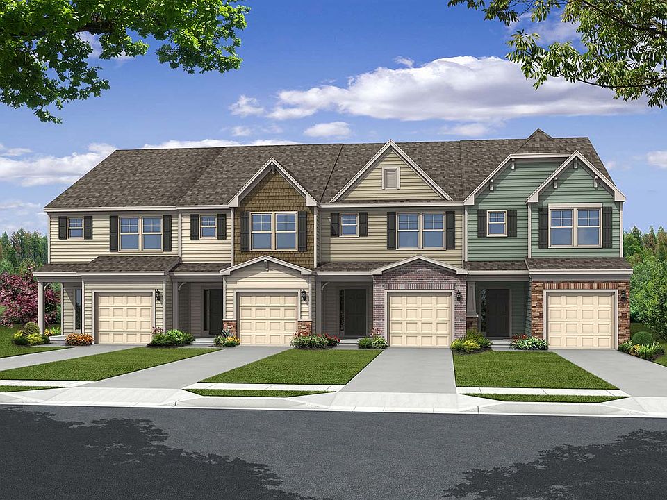 The Durham is a two-story, two-bedroom, two-and-a-half-bath townhome with a one-car attached garage, spacious family room, a kitchen with an island and pantry, and a cozy, covered rear porch. The second floor features two primary bedrooms with private, attached baths, plus a laundry room and a loft area. The Durham also features an unfinished storage area.