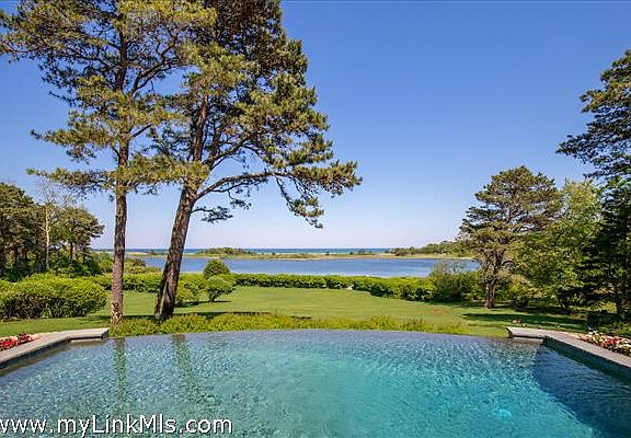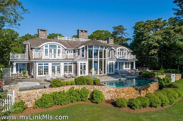 This magnificent home lies on an 1-acre lot in the very special Harthaven community and has spectacular views across Farm Pond, the barrier beach and Vineyard Sound. Built of the highest quality with an extraordinary sense of style and design, the home features a grand entry foyer, a great room with a 20ft wall of glass, dramatic stone fireplace and cantilevered 2nd floor balconies. The gourmet kitchen and pantry look through the grand dining room, all offering amazing views. There is a ground floor master suite and as well as four 2nd floor suites, each as nice as the next and all loaded with detail and craftsmanship. As one steps outside, they are greeted with a large patio surrounding an infinity-edge pool, jacuzzi, firepit and exterior kitchen. There is an abundance of stonework, and the entire property is professionally landscaped with a rolling, lush lawn stretching to the ponds edge and private pier to access water activities. This property is quite special on all fronts, is being offered in excellent condition and is a must see for any discerning buyer.