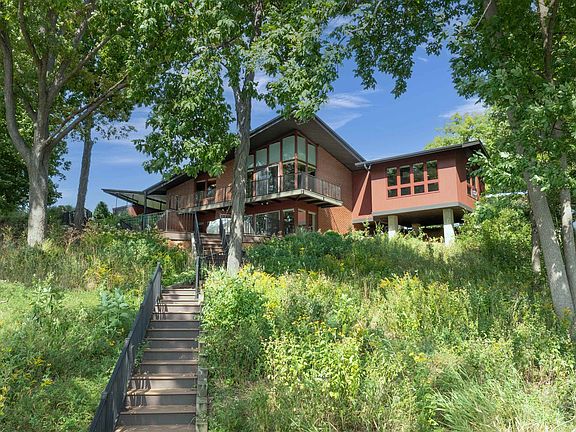 Showings begin 9/15. True contemporary style resting on a picturesque hillside overlooking the river. Graced with expansive windows that take advantage of the southern exposure and fantastic views. Enjoy the lifestyle offered by such a unique home including a staircase to the water and a permanent pier. In addition to the 3 bedrooms, you'll find 2 Murphy beds in the lower level family room. The studio/study was newly added about 10 years ago. This space is adjacent to the main floor Living Room and offers options for the way you live. Deck and staircase to the water are a maintenance free material. Don't miss this fantastic opportunity!