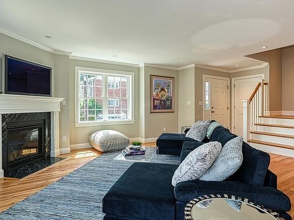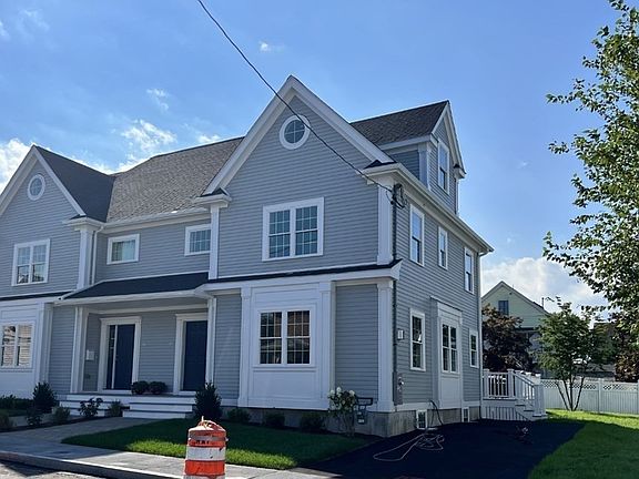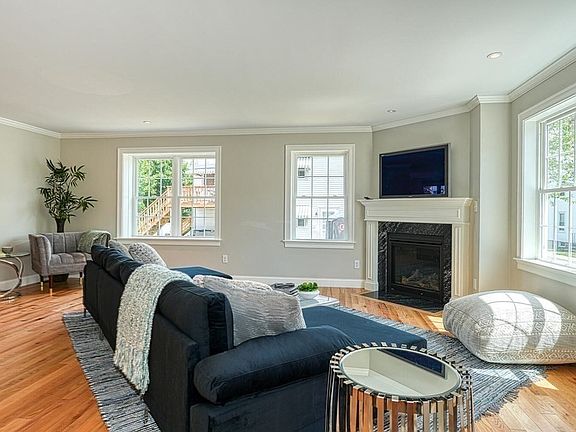 The last of 2 New Luxury Town-Homes by Local Master Builder! Bright & airy 3,112 sq. ft. 9 rm 4 bdrm 3 Full 2 Half bath unit features exquisite millwork & detailing, gas fireplace, hardwd floors, high ceilings, lots of recessed lighting, open concept 1st floor livingrm -diningrm- kitchen w/slider to deck, 1/2bath. 2nd floor master suite with walk in closet, master bath with oversized tiled glass shower, 2 additional bedrooms with double closets, hall full bath with double vanity & full size hall laundry closet. 3rd floor bedroom & home office, full bath with oversized glass shower. Lovely lower level family room with vinyl plank floor, recessed lights, 1/2 bath; additional good size utility/storage room. 2 FHA by gas heating/ac systems, 200 amp electric. Large-Private,fenced backyard. Separate 2 car driveway. Near Vibrant Watertown Square. Harvard Bus, Express buses, Highway Access, Easy to Boston & Cambridge.